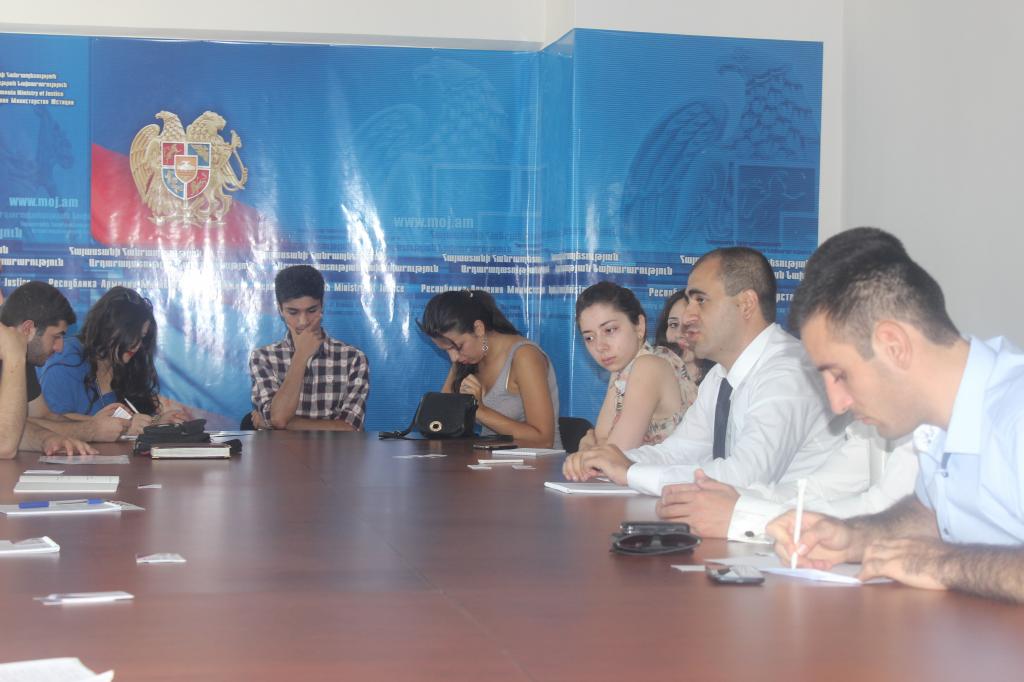 Այնուհետև ուսանողները հանդիպել են նաև Նախարարության համակարգի իրավական ապահովման վարչության պետ Նորայր Բալայանին:
