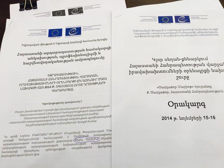 Կլոր սեղան-քննարկումը կազմակերպվել էր Եվրոպայի խորհրդի և Արդարադատության նախարարության կողմից Եվրոպական միության և Եվրոպայի խորհրդի համատեղ ծրագրի՝ «Հայաստանի արդարադատության համակարգի անկախության, պրոֆեսիոնալիզմի և հաշվետվողականության ամրապնդումը» շրջանակներում: