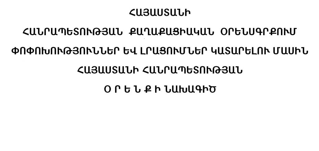 Հանրային քննարկման է ներկայացվում «Քաղաքացիական օրենսգրքում փոփոխություններ և լրացումներ կատարելու մասին» ՀՀ օրենքի նախագիծը