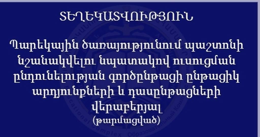 Պարեկային ծառայությունում պաշտոնի նշանակվելու նպատակով ուսուցման ընդունելության գործընթացի ընթացիկ արդյունքների և դասընթացների վերաբերյալ (թարմացված)