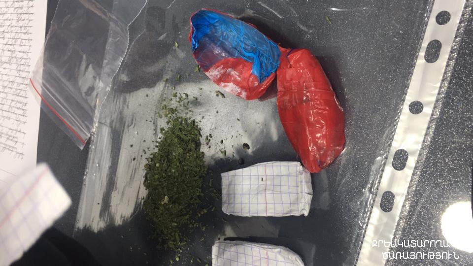 Փաթեթում զննությամբ հայտնաբերվել են մարիխուանա տեսակի թմրամիջոցին նմանվող, ընդհանուր 29,8 գրամ քաշով և մեթամֆետամին տեսակի թմրամիջոցին նմանվող, 1,13 գրամ քաշով առանձնացված զանգվածներ: