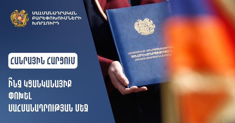 ՀՀ վարչապետի 27.01.2022 թվականի թիվ 111-Ա որոշմամբ ձևավորվել է Սահմանադրական բարեփոխումների խորհուրդը, ինչպես նաև հաստատվել է խորհրդի անհատական կազմը և գործունեության կարգը:
