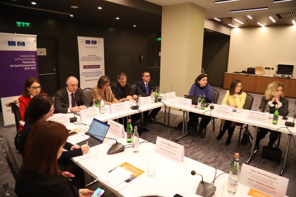 Karen Karapetyan made an opening speech and emphasized the multi-sectoral cooperation between the EU/CoE-Ministry of Justice. According to the deputy minister, the goal of the program is to support anti-corruption reforms in the country.