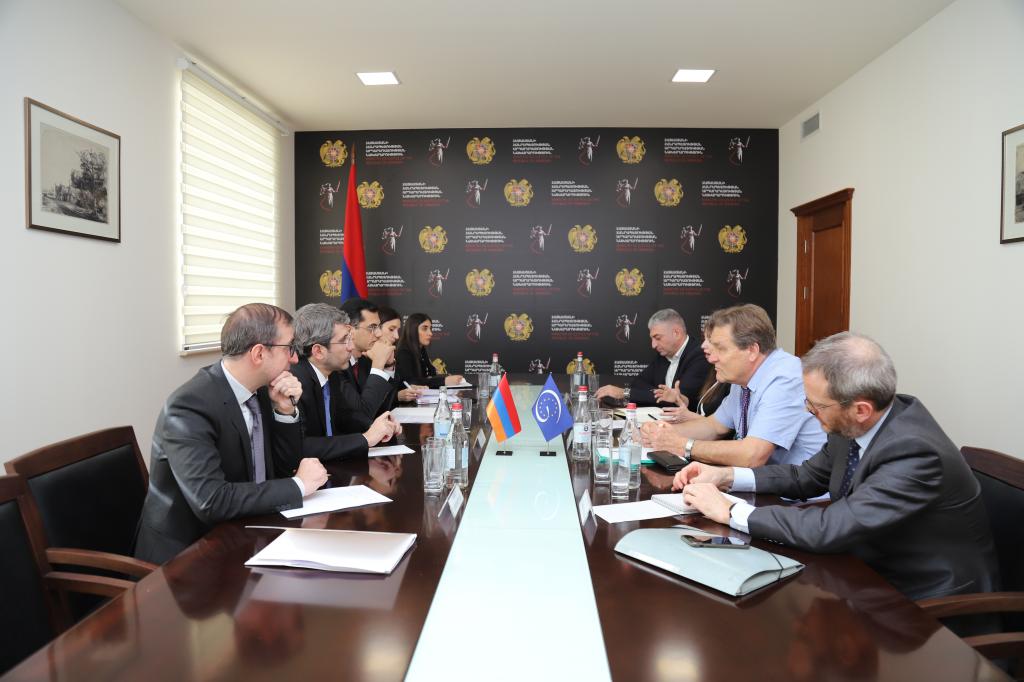 Minister of Justice Grigor Minasyan receives Co-Rapporteurs of the Monitoring Committee of the Parliamentary Assembly of the Council of Europe for Armenia Kimmo Kiljunen, Boriana Åberg and Secretary of the PACE Monitoring Committee Matthew Monin, who are in Armenia on a fact-finding mission.