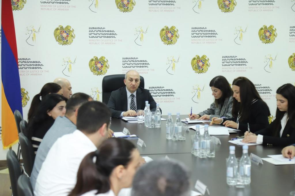 Deputy Minister of Justice Levon Balyan delivered welcoming remarks at the first meeting of the working group set up to review the system of conditional early release from serving punishment, in accordance with the principles of safety, security and social re-integration. The Deputy Minister presented the goals and objectives of the working group, particularly the vision for reforms of the system within a three-month period as provided for by the order, as well as the need to have a roadmap for actions to implement the vision and to submit the roadmap to the Minister of Justice. The members of the working group considered and submitted proposals regarding the current problems of the system of conditional early release from serving punishment, particularly the change of procedure for preparation of the relevant reports of the Penitentiary and Probation Services, the review of the circumstances for assessing the likelihood of a convict committing a new offence, the application of a toolkit for conditional early release and review of the scoring system, the regulation of the issues related to the employment of convicts and the need to vest the Probation Service with wider powers. Summing up the meeting, Levon Balyan emphasised that development of the institution of conditional early release in Armenia will be possible through the development of new proposals following change of the existing system and local needs assessment.
