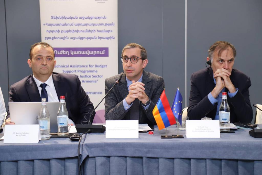 Deputy Minister of Justice Karen Karapetyan delivered opening remarks at the final event of the "Support to the justice reform in Armenia — Phase I" technical assistance programme funded by the European Union. The Deputy Minister expressed gratitude to the colleagues of the EU and the technical assistance programme team for the willingness that they showed and the efforts that they made during implementation of the programme and the effective co-operation, as well as for achieving positive results. Karen Karapetyan presented the activities carried out in the judicial and legal sector within the scope of the technical assistance programme, which included study visits to European countries to study the best practices in the field of the rule of law, organisation of courts’ activities, as well as trainings on the capacity-building for various departments of the Ministry of Justice in regard to budget management, methodologies for monitoring and evaluation of programmes, etc.