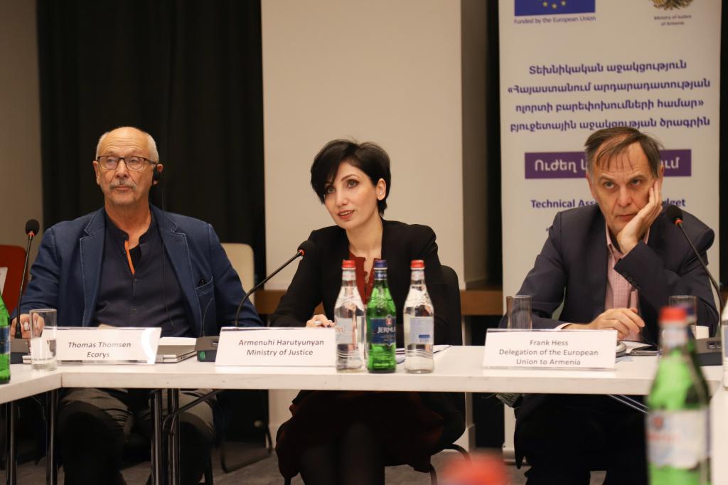 Разработаны также предложения и решения по законодательным изменениям, а также по программе реализовано изучение конституционных и правовых регулирований, которые позволят применить независимые административные апелляционные советы, что может снизить нагрузку судов по небольшим делам, административным делам первой инстанции, тем самым способствуя внедрению в Армении альтернативных способов разрешения споров.