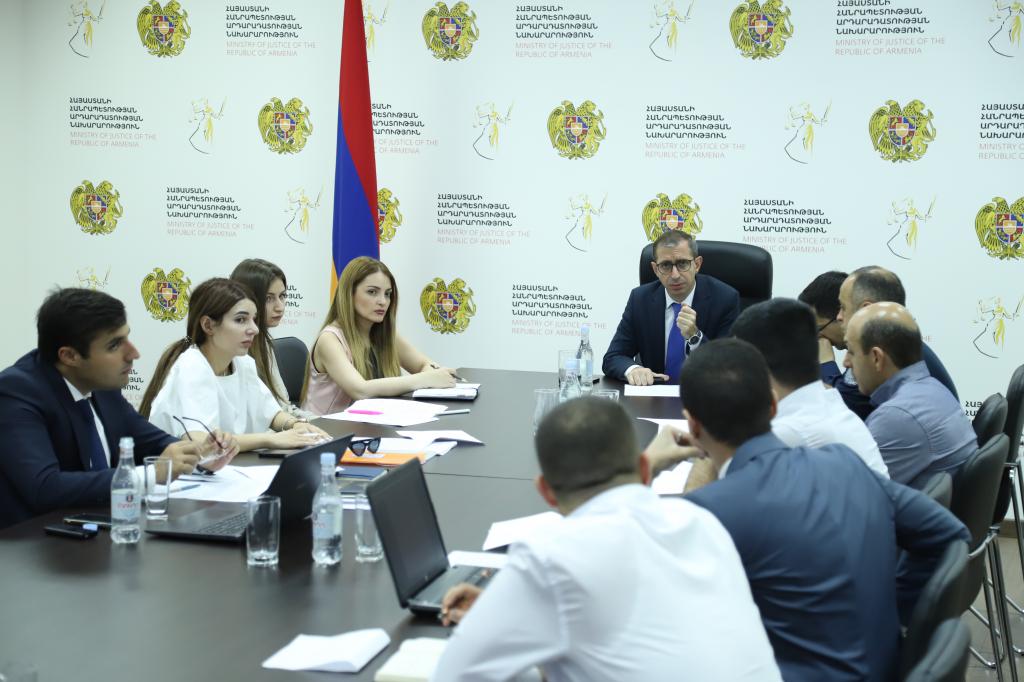 При участии заместителя министра юстиции Карена Карапетяна и совместно с заинтересованными органами обсуждался разработанный министерством юстиции и фондом "Центр развития законодательства" пакет проектов правовых актов, предусматривающих механизмы текущего изучения добропорядочности для действующих судей, прокуроров, следователей. Обсуждался ряд имеющих существенное значение положений, предлагаемых пакетом проектов, и рекомендации по ним. В результате развернувшегося конструктивного обсуждения были намечены дальнейшие направления доработок пакета проектов. В обсуждении приняли участие представители Высшего судебного совета, Генеральной прокуратуры и Следственного комитета.