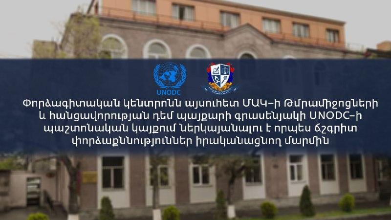 В ходе тренинга Центр продемонстрировал положительный показатель. UNODC направил в отдел биологических и криминалистических экспертиз наркотиков центра образцы, предусмотренные для тренинга по исследованиям наркотических средств и психотропных веществ. Данные, полученные в ходе исследования образцов, уже зарегистрированы на официальном сайте UNODC, где Экспертный центр имеет свою выделенную платформу, однако, исходя из безопасности базы данных, она не опубликовывается. Вышеуказанное предоставит возможность ряду авторитетных европейских центров, осуществляющих экспертизы, составить четкое мнение относительно ГНКО "Экспертный центр Республики Армения" как о центре, осуществляющем абсолютно точные экспертизы.