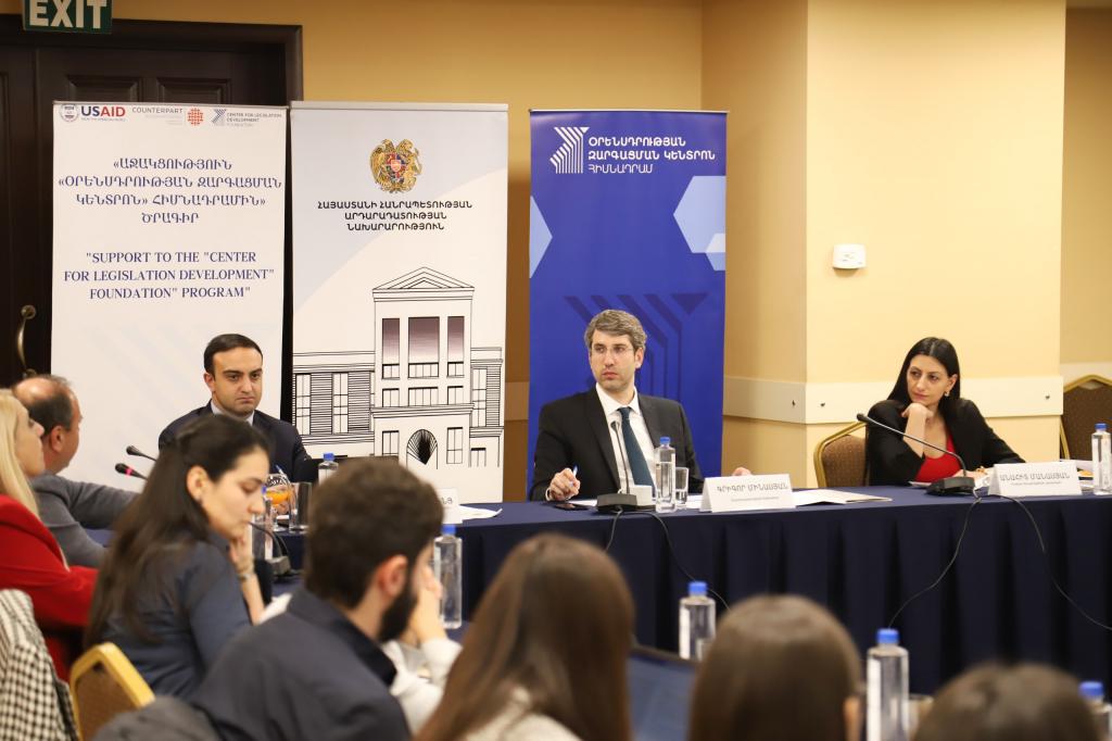 Министр юстиции Григор Минасян выступил на общественном обсуждении по законодательной инициативе относительно формирования комиссии по сбору фактов, в котором принял участие ряд общественных организаций.