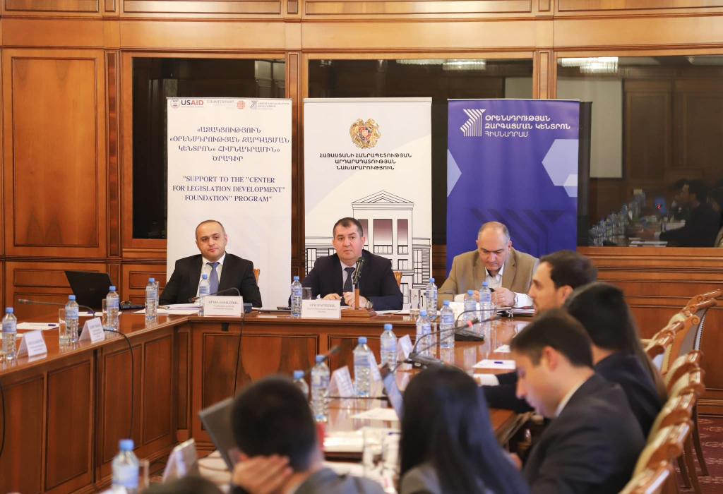 Обсуждение было организовано по инициативе Министерства юстиции и фонда "Центр развития законодательства" организацией Counterpart International в рамках программы "Содействие фонду "Центр развития законодательства"".