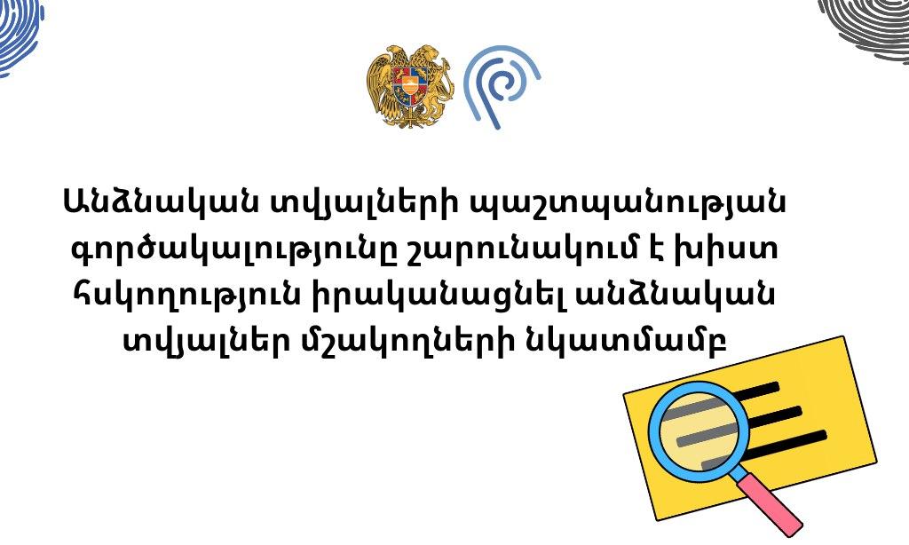 Агентство по защите персональных данных призывает всех обработчиков персональных данных строго следовать правилам обработки персональных данных. Напоминаем, что несоблюдение требований закона РА "О защите персональных данных" влечет за собой административную ответственность, установленную Кодексом РА об административных правонарушениях, в размере 200-500 тыс. драмов РА.