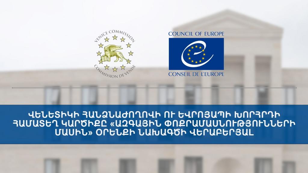 Венецианская комиссия и директорат СЕ по вопросам демократии и человеческого достоинства приветствовали усилия Армении по возобновлению процесса доработки проекта и отметили, что он будет способствовать приведению законодательства Армении, касающегося прав национальных меньшинств, в соответствие с международными стандартами. Совместным мнением представлен ряд предложений по проекту, касающихся понятия, охвата национальных меньшинств, гарантий свободы использования ими родного языка и обеспечения права на образование, правил и мандата формирования Совета по делам национальных меньшинств и других вопросов.