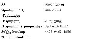 եթե Դուք որեւէ հարցով կամ խնդրով դիմում եք ներկայացրել ՀՀ Արդարադատության նախարարությանը, այսինքն, հանձնել եք այն ՀՀ Արդարադատության նախարարության ընդունարան կամ ուղարկել փոստով, ապա կառավարության ընդունարանում` առձեռն եւ կամ փոստատարի միջոցով ստացել եք հետեւյալ նմուշի ծանուցագիր: