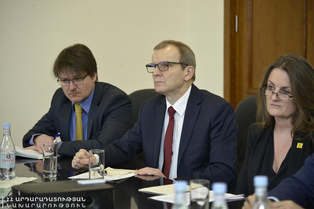 Փոխնախարարը ողջունել է բարձրաստիճան հյուրերին Արդարադատության նախարարությունում և ներկայացրել նախարարության կողմից մշակված ռազմավարությունները և երկրում ժողովրդավարության խթանմանն ուղղված ջանքերը: