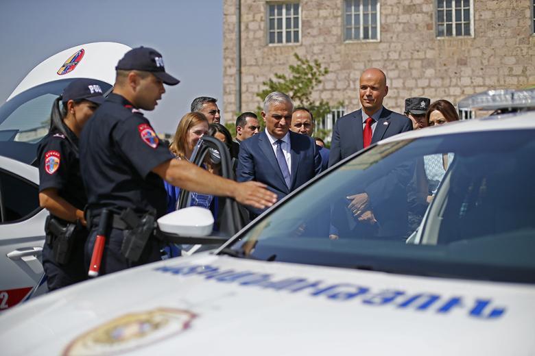 Պարեկային ծառայության ղեկավարությունը հյուրերին ներկայացրել է ծառայության ավտոտրանսպորտային միջոցների տեխնիկական ու ծրագրային ապահովվածությունը, ինչպես նաև պարեկների տեխնիկական ու համազգեստային հագեցվածությունը: