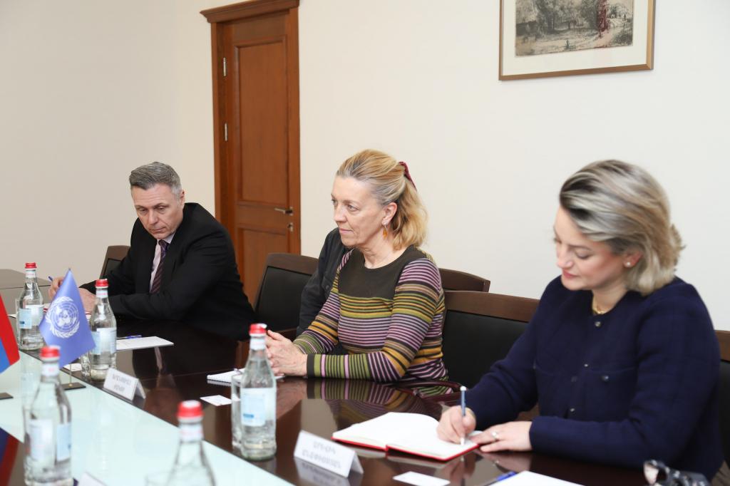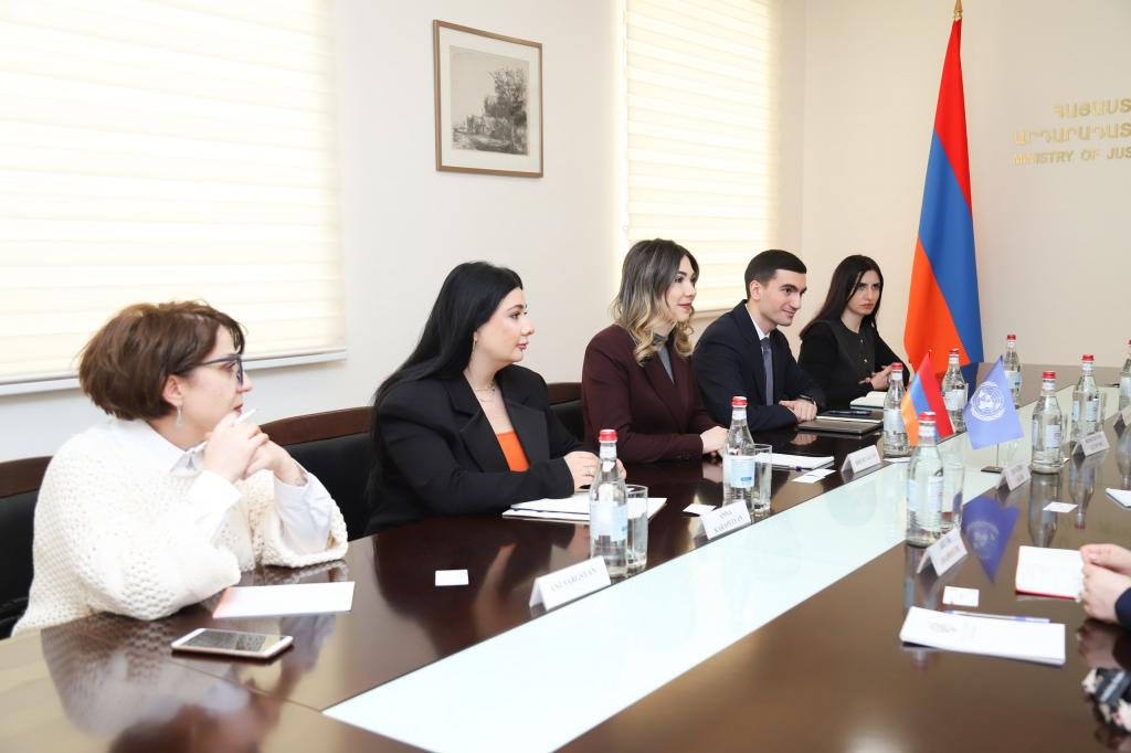 ՀՀ արդարադատության նախարար Սրբուհի Գալյանն ընդունել է ՀՀ-ում ՄԱԿ-ի մշտական համակարգող Ֆրանսուազ Ժակոբին: Նախարարն ի թիվս այլնի բարձր է գնահատել ՄԱԿ-ի զարգացման ծրագրի և ՄԱԿ-ի մանկական հիմնադրամի հետ արդյունավետ և վստահելի համագործակցությունն ու շնորհակալություն հայտնել նախարարության կարիքները մշտապես հասցեագրելու համար: Նա կարևորել է ՄԱԿ-ի մշտական համակարգողի գրասենյակի դերը ՄԱԿ կառույցների հետ համագործակցության համակարգման գործում: Սրբուհի Գալյանը կարևորել է նախարարության մասնակցությունը Հայաստան-ՄԱԿ կայուն զարգացման համագործակցության նոր 2026-2030 շրջանակի (UN Sustainable Development Cooperation Framework (UNSDCF) մշակման աշխատանքներին: Հանդիպմանը քննարկվել են ԱՆ ռազմավարություններից բխող ոլորտային մի շարք հարցեր, ինչպես նաև՝ նախարարության 2025թ.-ի առաջնահերթությունները: Առանձնակի ուշադրություն է հրավիրվել համագործակցության հետևյալ ուղղություներին՝ Մարդու իրավունքների պաշտպանությանը, Սահմանադրական բարեփոխումների իրականացմանը, քրեակատարողական և պրոբացիայի ոլորտներում կարողությունների զարգացմանը, դատաիրավական ու հակակոռուպցիոն ոլորտի բարեփոխումներին: Առաջարկվել է իրականացնել դատաիրավական բարեփոխումներին միտված ծրագրեր, ինչպես նաև՝ կոռուպցիայի հակազդման մարմինների շարունակական զարգացմանն ուղղված համատեղ օրակարգ մշակել: Անդրադարձ է եղել նաև Անչափահասների արդարադատության ոլորտի բարեփոխումներին ՄԱԿ-ի շարունակական աջակցությանը: Փոխգործակցության շրջանակում պայմանավորվածություն է ձեռք բերվել սպասվող համատեղ ծրագրերի իրականացման եղանակների շուրջ: