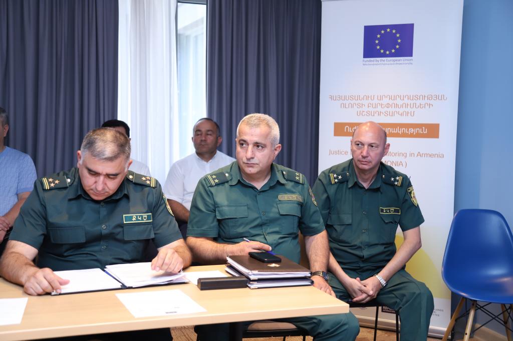 Քննարկմանը ներկա են գտնվել նաև ԱՆ քրեակատարողական ծառայության ներկայացուցիներ, այդ թվում՝ ծառայության պետի տեղակալ Վահե Նանուշյանը և Սահակ Գրիգորյանը: