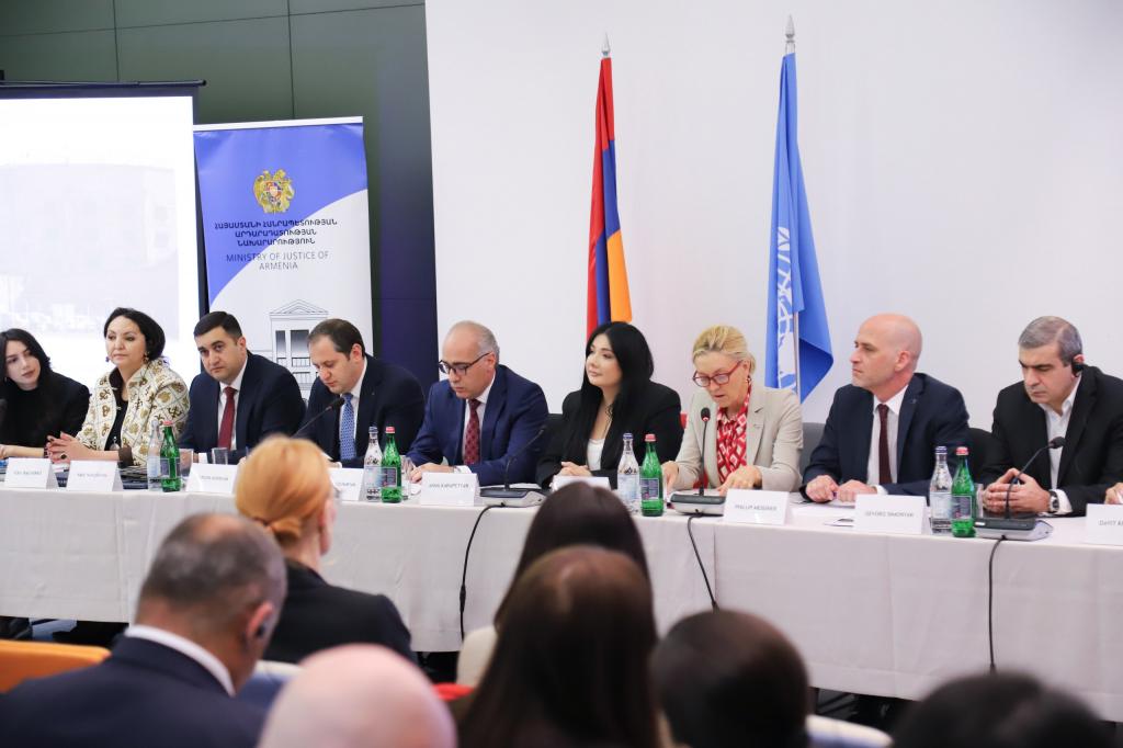 Արդարադատության նախարարի տեղակալներ Աննա Կարապետյանը և Գևորգ Քոչարյանը միջազգային գործընկերների են ներկայացրել նախարարության համակարգմամբ քրեակատարողական և պրոբացիայի ոլորտներում իրականացվող բարեփոխումները, առկա կարիքները, ինչպես նաև ՄԱԿ-ի Թմրամիջոցների և հանցավորության դեմ պայքարի գրասենյակի (UNODC) կողմից իրականացված գնահատման արդյունքներով մշակված նոր ծրագիրը։