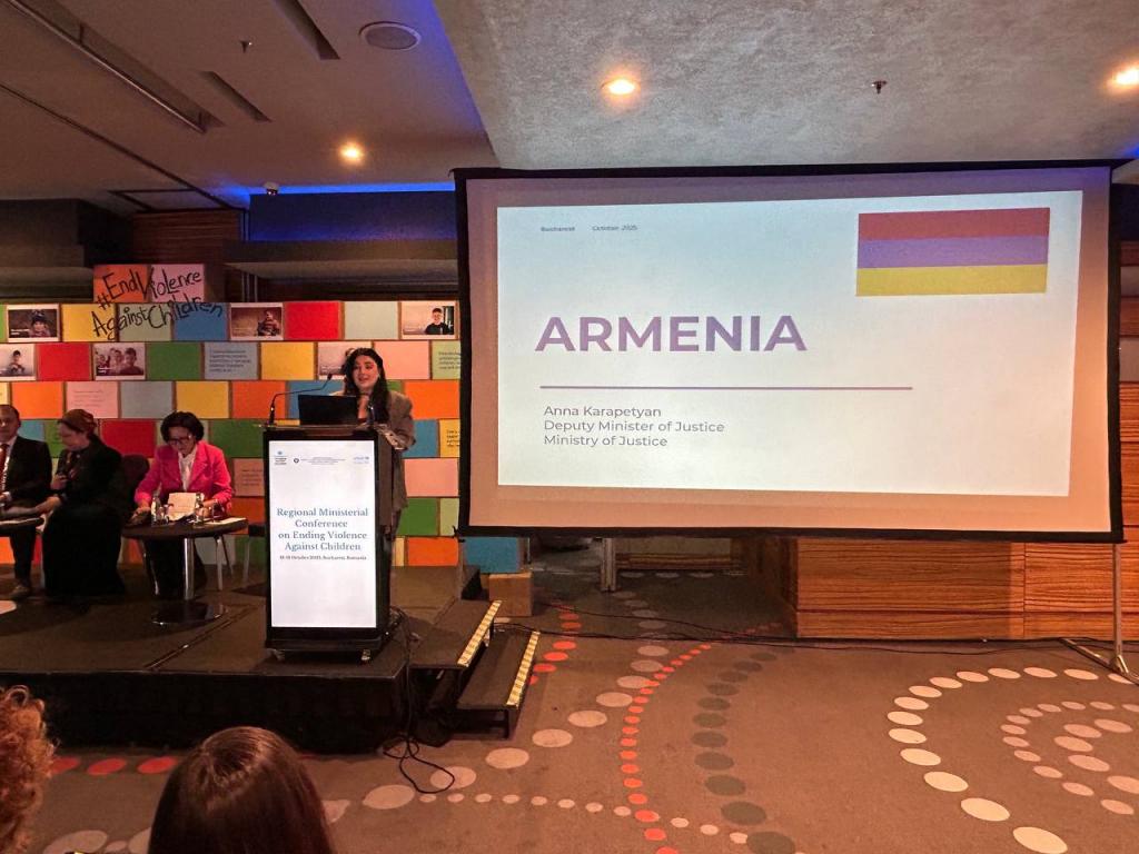 Արդարադատության նախարարի տեղակալ Աննա Կարապետյանը Բուխարեստում մասնակցել է Երեխաների հանդեպ բռնության դեմ պայքարի հարցերով տարածաշրջանային նախարարական համաժողովին, որտեղ հանդես է եկել ելույթով՝ ներկայացնելով անչափահասների արդարադատության ոլորտում 2024 թվականին Բոգոտայի նախարարական համաժողովի ընթացքում ստանձնած միջազգային հանձնառությունները, ինչպես նաև դրանց համահունչ իրականացվող աշխատանքները: Աննա Կարապետյանը ներկայացրել է ոլորտային զարգացումները, ներառյալ՝ օրենսդրական նախաձեռնություններն ուղղված երեխայակենտրոն արդարադատությանը, դատավարական գործընթացներում ներգրավված հոգեբանների դերի ամրապնդմանը և ՀՀ-ում արդեն իսկ գործող Բարնահուս մոդելների զարգացմանն ու միջազգային չափանիշներին ամբողջությամբ համապատասխանեցմանը։ Ներկայացվել են նաև անչափահասների արդարադատության առանձնահատկությունների վերաբերյալ բազմաշահառու վերապատրաստումները, որոնք անց են կացվել քննիչների, դատախազների, սոցիալական աշխատողների և անչափահասի քննչական գործողություններին ներգրավվող որակավորված հոգեբանների մասնակցությամբ: