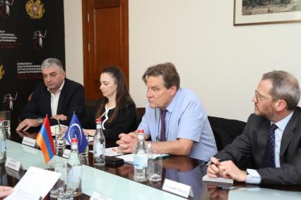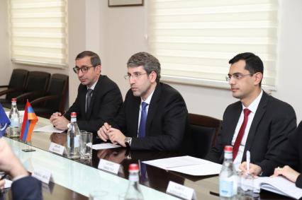 Minister of Justice Grigor Minasyan receives Co-Rapporteurs of the Monitoring Committee of the Parliamentary Assembly of the Council of Europe for Armenia Kimmo Kiljunen, Boriana Åberg and Secretary of the PACE Monitoring Committee Matthew Monin, who are in Armenia on a fact-finding mission.