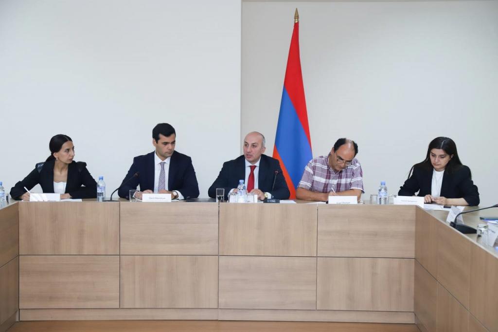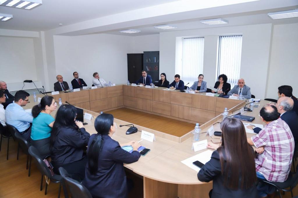 Under the chairmanship of Deputy Minister of Justice Levon Balyan, a regular discussion-meeting was held to discuss with international colleagues the progress of reforms in the penitentiary and probation sectors. The Deputy Minister welcomed his colleagues, expressed gratitude for responding to the invitation and for attending the meeting. He stressed that the meeting is attended by international colleagues with whom there are already effective programmes and co-operation in the penitentiary and probation sectors, and expressed hope that they will be ongoing. Levon Balyan emphasised that the results of co-operation are clear to see. Head of the UN and Sustainable Development Division Davit Manukyan mentioned that, in spite of the fact that the Government of the Republic of Armenia is determined with respect to the issue of reforms in the sectors, co-operation with international colleagues makes the reforms more prospective. Within the scope of the co-operation, colleagues from the United Nations Office on Drugs and Crime (UNODC) Philipp Meissner and expert Vera Tkachenko are in Armenia to carry out needs assessment mission in the area of penitentiary and probation reforms. The Deputy Minister mentioned that, in the context of the ongoing judicial-legal reforms, special importance is attached to these sectors, effective protection of the rights of persons serving punishment, as well as the creation of guarantees for them, and in regard to this, the needs assessment mission, within the scope of penitentiary and probation reforms, has come to help to identify and assess the progress made in the sectors, the ongoing programmes and the obstacles that have been encountered. These assessments and observations will go on to serve as the basis for developing the international partnership in addressable directions in terms of establishing new partnerships and achieving even better results in the future. International colleagues Ph. Meissner and V. Tkachenko presented the mission and goals of the partnership, noting the importance of combating the criminal subculture, as well as the transition from punitive policy to restorative policy. The colleagues also emphasised the need for co-ordinated work as the basis for development of a new strategy. The meeting ended with a question-and-answer session.