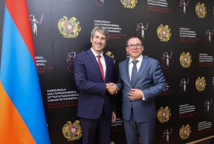 Minister of Justice Grigor Minasyan received the delegation led by President of the European Agency for Criminal Justice Cooperation (Eurojust) Ladislav Hamran. The Minister attached importance to the partnership with the European Agency for Criminal Justice Cooperation in the criminal justice sector in the areas of the fight against organised crime, terrorism, money-laundering, human trafficking and other grave crimes. The parties welcomed the ratification of the agreement with Eurojust on legal co-operation in criminal proceedings on 13 September 2024 and attached importance to the signing of draft "Work Arrangement" on 23 September 2024, ensuring implementation of the agreement. Minister Grigor Minasyan emphasised that over the past year, a solid documental framework for co-operation has been established between the law-enforcement and justice bodies of Armenia and the European Union. Issues related to the deepening of partnership in the area of personal data protection and other issues of mutual interest were touched upon during the meeting. President of the European Agency for Criminal Justice Cooperation (Eurojust) Ladislav Hamran congratulated Armenia on the 33rd anniversary of independence and attached importance to the establishment of co-operation between Eurojust and Armenia. Ladislav Hamran also emphasised the importance of appointment by Armenia of a Prosecutor for Co-operation in Eurojust and presented the ways and opportunities for partnership. The parties agreed to continue joint activities in the context of reforms in the justice sector.