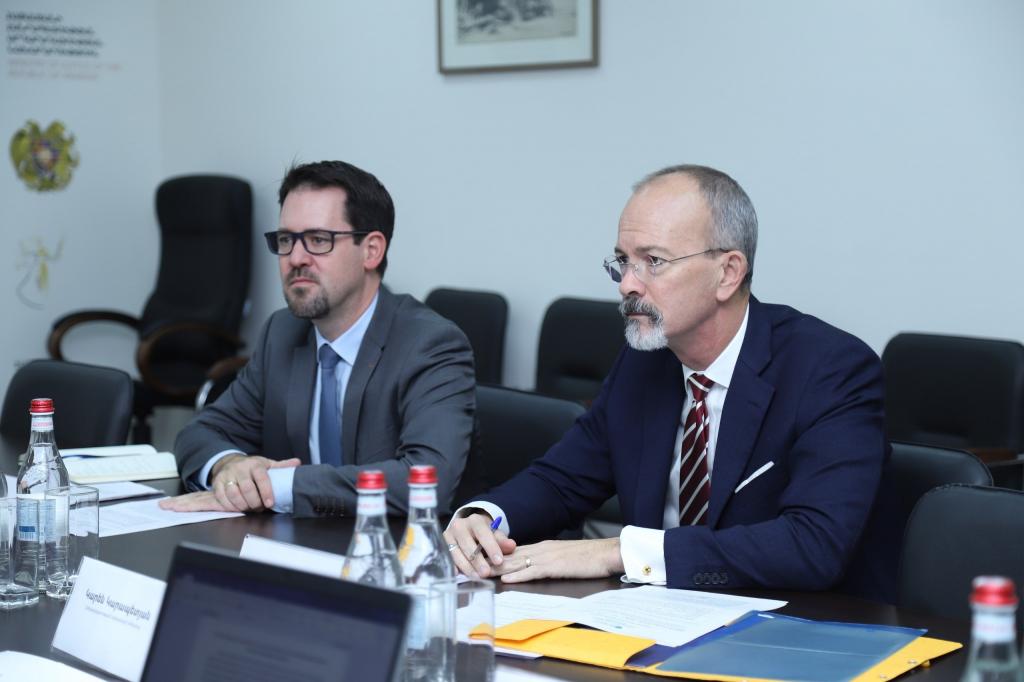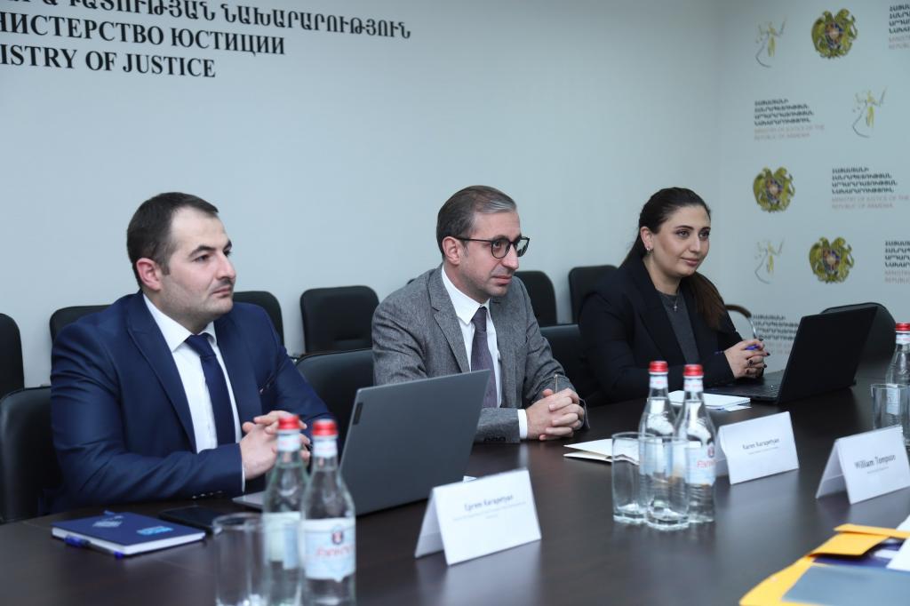 Deputy Minister of Justice Karen Karapetyan had a meeting with Head of the Eurasia Division in the Organisation for Economic Co-operation and Development (OECD) William Thompson and Head of the Eastern Europe and South Caucasus Unit Daniel Quadbeck. The Deputy Minister attached importance to the role of the OECD in the agenda for anti-corruption reforms and international anti-corruption commitments in Armenia, highlighting the importance of close co-operation between the OECD and the Ministry of Justice within the scope of the OECD Anti-Corruption Network. Karen Karapetyan presented the progress of the whole-scale anti-corruption reforms that are being implemented under the Anti-Corruption Strategy, as well as the areas that are under co-ordination of the Ministry of Justice within the scope of the OECD. The OECD representatives presented the OECD Concept Paper on Access to People-Centred Justice and Expansion of Justice Systems, as well as the mechanisms for management of property forfeited as a result of proceedings for civil forfeiture of illegal assets. The parties reaffirmed that the rule of law and access to justice play an important role in restoring trust, ensuring respect for democratic values and assisting in comprehensive restoration. An agreement was reached to consider appropriateness for expanding activities in these two directions in the future.