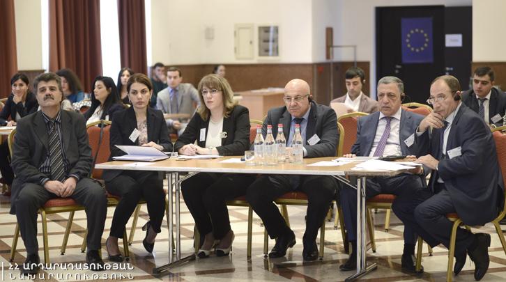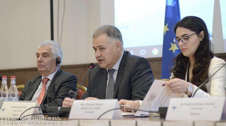 Давид Арутюнян поприветствовал участников конференции и поблагодарил Европейский Союз за постоянное содействие в реформировании сферы юстиции Армении. Министр подчеркнул важность работы, осуществленной совместно с европейскими экспертами в рамках инструмента TAIEX, и отметил, что эта работа была выполнена в правильный период, когда Армения стоит на пути серьезных реформ в связи с изменениями Конституции. По словам Министра, результаты программы — доклады и содержащиеся в них предложения, дали возможность разработать основанную на доказательствах стратегическую программу и внедрить в нее четкий механизм мониторинга и оценки прогресса.