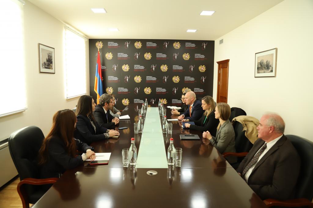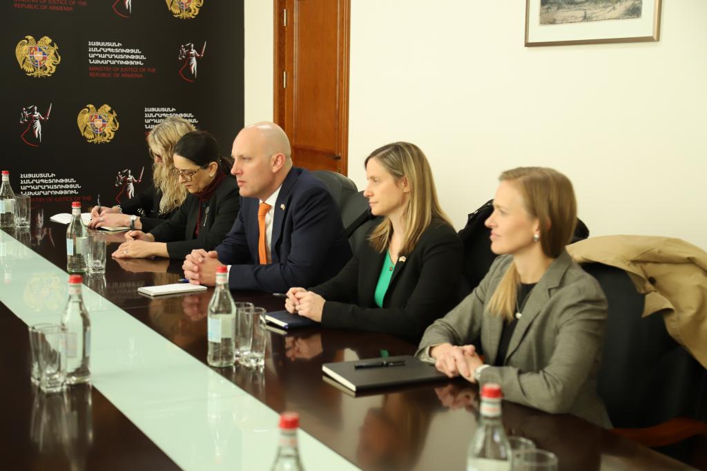 Исполняющий обязанности министра юстиции Григор Минасян принял делегацию во главе с директором программ Европы и Азии Бюро по борьбе с международным оборотом наркотических средств и правоохранительной деятельности (INL) Госдепартамента США Джеймсом Эпплгейтом.