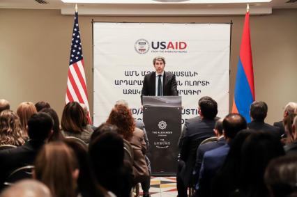 Исполняющий обязанности министра юстиции Григор Минасян принял участие и выступил с речью на церемонии открытия программы "Содействие сфере юстиции Армении" Агентства США по международному развитию. Программа "Содействие сфере юстиции Армении" Агентства США по международному развитию — это пятилетняя программа, целью которой является содействие Правительству Республики Армения в формировании более беспристрастной и независимой системы правосудия, а также повышение общественного доверия к верховенству права.