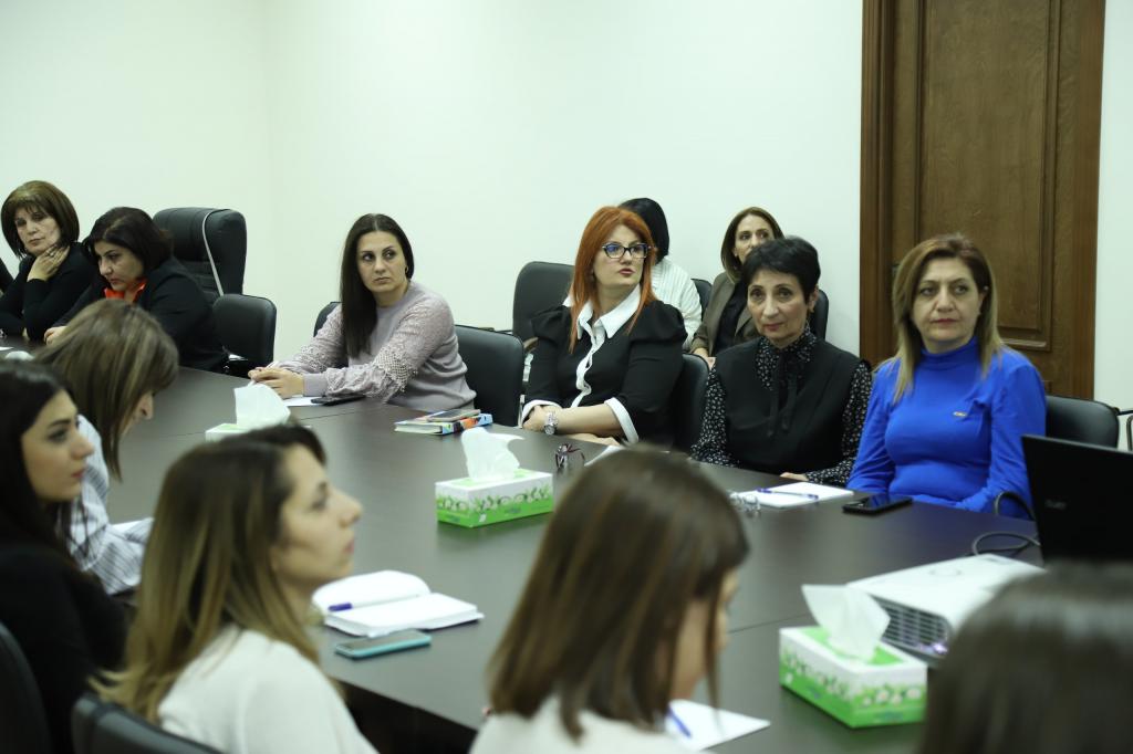 Докладчиками выступили начальник Управления разработки и мониторинга антикоррупционной политики Министерства юстиции Кристине Габузян, начальник отдела разработки антикоррупционной политики Епрем Карапетян и главный специалист Управления по контролю за поведением публичных служащих Комиссии по предупреждению коррупции Светлана Джилавян.