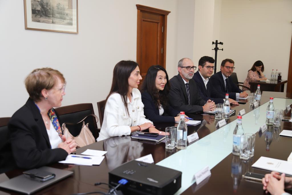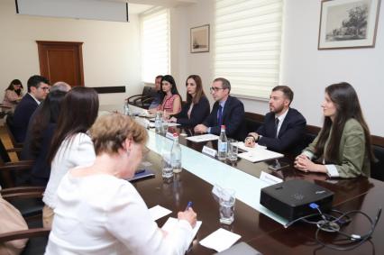 Заместитель министра юстиции Карен Карапетян принял делегацию, возглавляемую заместителем главного юрисконсульта Азиатского банка развития (АБР) Демианом Истманом. Заместитель министра поблагодарил АБР за содействие, проявленное в процессе организации международной арбитражной конференции, проведенной в Армении. Представители Азиатского банка развития и ее постоянной миссии в Армении в свою очередь подчеркнули важность двустороннего сотрудничества в сфере правосудия, в процессе улучшения инвестиционной среды в Армении. В ходе встречи стороны обсудили новые пути сотрудничества между Министерством юстиции и Азиатским банком развития в сфере Службы пробации, судебно-правовой сфере, сфере борьбы с коррупцией, а также в сфере цифровизации. Обсуждалась также возможность осуществления совместных работ, направленных на эффективность организации профессиональных курсов и иных учебных программ и повышение потенциала в сфере медиации. В завершение встречи Карен Карапетян наградил старшего юрисконсульта Азиатского банка развития Кристину Пак и старшего специалиста по инвестициям постоянной миссии АБР в Армении Нарине Аветисян почетными грамотами.