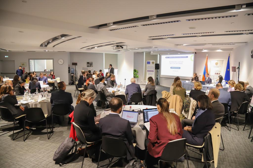 Под руководством заместителя Министра юстиции Карена Карапетяна состоялась конференция международного координационного партнерства по поддержке реформ сферы юстиции. Целью конференция было представить международным партнерам прогресс в реформировании сферы, предполагаемые действия и их приоритетность, рассмотреть направления оказания поддержки международными партнерами и возможности расширения мер, направленных на развитие сферы. В мероприятии со вступительным словом выступил руководитель отдела сотрудничества делегации ЕС Франк Гесс, который высоко оценил повестку реформ, проводимых в сфере правосудия, и применение в этом процессе международных стандартов. Он подчеркнул важность сотрудничества с Министерством в различных форматах, в том числе посредством программ бюджетной поддержки. В своей речи Карен Карапетян приветствовал работу с международными партнерами в различных стратегических сферах и поблагодарил за оказанную поддержку организации, осуществляющие международную миссию в Армении. Заместитель Министра представил реализуемые совместно с международными партнерами программы и их результаты, в том числе законодательные и институциональные изменения. Были представлены реформы, зарегистрированные за последний год в сфере правосудия, в сфере защиты прав человека, антикоррупционной, судебно-правовой, уголовно-исполнительной сфере и сфере пробации, а также цифровизации. Во второй части конференции разделенные по сферам рабочие группы обсудили отраслевые потребности по стратегическим направлениям и перспективы направленного на их реализацию содействия международных партнеров. С международными партнерами были достигнуты договоренности о продолжении обсуждений по внедрению намеченных отраслевых программ, а также других возможностей сотрудничества.