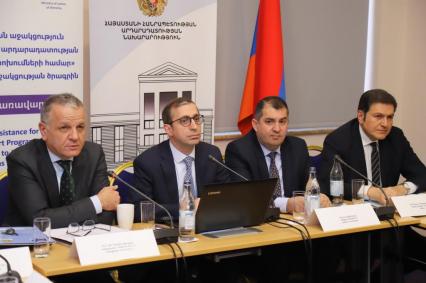 Во второй половине встречи Карен Карапетян ознакомил с ходом выполнения соглашений о бюджетной поддержке "Содействие осуществлению реформ в сфере юстиции в Армении. Этапы I и II", осуществляемой при содействии ЕС.
