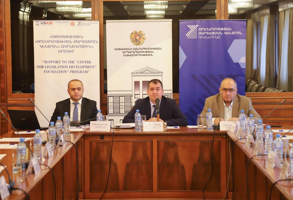 Обсуждение было организовано по инициативе Министерства юстиции и фонда "Центр развития законодательства" организацией Counterpart International в рамках программы "Содействие фонду "Центр развития законодательства"".