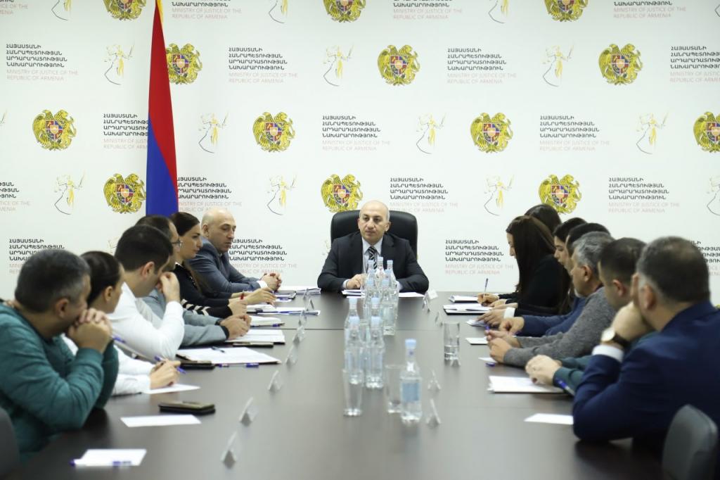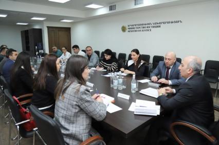 Заместитель министра юстиции Левон Балян выступил с приветственной речью на первом заседании рабочей группы, созданной в целях пересмотра системы условно-досрочного освобождения от отбывания наказания в соответствии с принципами защиты, безопасности и социальной реинтеграции. Заместитель министра представил цели и задачи создания рабочей группы, в частности – видение реформ системы в предусмотренный приказом трехмесячный срок и необходимость наличия и представления министру юстиции дорожной карты действий по ее реализации. Участники рабочей группы обсудили и представили предложения по актуальным проблемам системы условно-досрочного освобождения от отбывания наказания, в частности – об изменении порядка составления соответствующих отчетов Уголовно-исполнительной службы и Службы пробации, пересмотре обстоятельств для оценки вероятности совершения осужденным нового преступления, применении инструментария условно-досрочного освобождения и пересмотре системы баллов, урегулировании вопросов трудоустройства осужденных и необходимости отведения Службе пробации более широких полномочий. Подводя итоги встречи, Левон Балян подчеркнул, что развитие института условно-досрочного освобождения в Армении в результате изменения действующей системы и оценки местных потребностей станет возможным посредством разработки новых предложений.