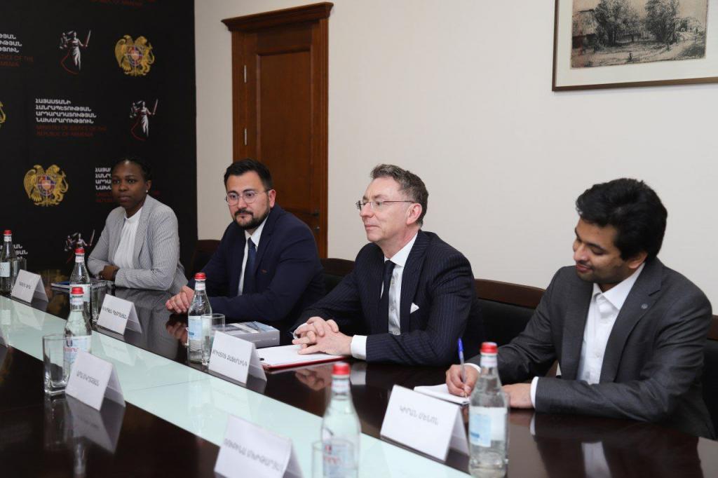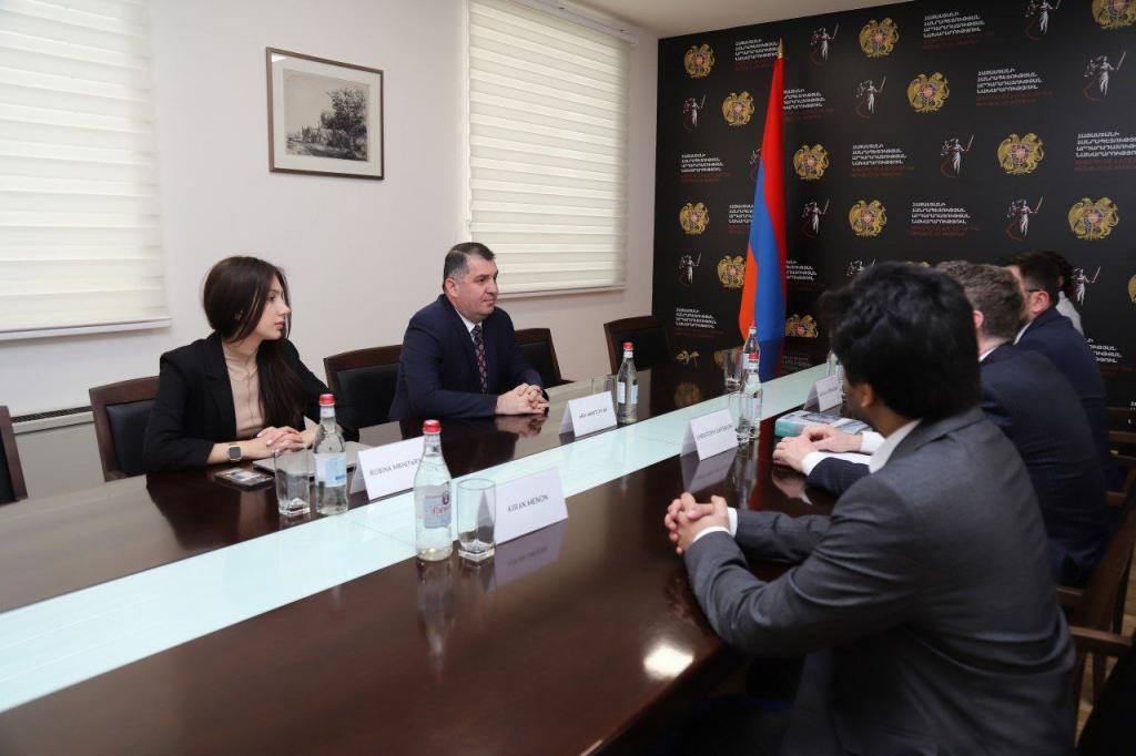 Заместитель Министра юстиции Ара Мкртчян принял делегацию во главе с директором Международной академии Нюрнбергских принципов профессором Кристофом Заферлингом. С 1 февраля Республика Армения стала полноправным членом международного уголовного суда. Министерство юстиции, будучи органом, разрабатывающим отраслевую политику сферы, инициировало со всеми заинтересованными ведомствами процесс установления соответствующих регулирований во внутригосударственном законодательстве с целью обеспечения исполнения обязательств, принятых Республикой Армения. Ара Мкртчян представил Кристофу Заферлингу шаги, направленные на надлежащее исполнение принятых по МУС обязательств, и видение дальнейших программ, подчеркнув важность установления в контексте развития международных связей партнерских связей с Нюрнбергской академией. На встрече состоялся обмен мнениями по поводу обмена наилучшим консультационным опытом и оказания поддержки Республике Армения на пути членства в международном уголовном суде. Ранее в Академии юстиции стартовал ряд трехдневных обучающих курсов на тему "Развитие международного уголовного права в Республике Армения", предусмотренных для следователей, прокуроров и других специалистов-юристов.