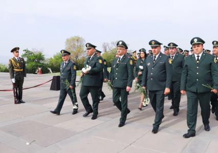 Служащие служб, под руководством начальника уголовно-исполнительной службы Министерства юстиции полковника Амбакума Григоряна и руководителя службы, обеспечивающей принудительное исполнение, Арсена Мнацаканяна также почтили память жертв Геноцида Армян. Служащие возложили цветы к мемориалу памяти жертв.