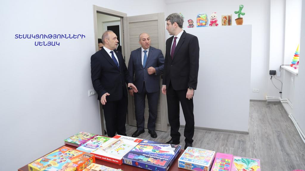 Министр юстиции Григор Минасян посетил Армавирский марзовый отдел Службы обеспечения принудительного исполнения. Министр совершил обход по отремонтированному зданию, ознакомился с условиями обслуживания граждан. Григору Минасяну были представлены услуги, предоставляемые в центре Службой обеспечения принудительного исполнения и Службой пробации. В новой оборудованной комнате для свиданий организуются встречи бенефициаров со своими детьми.