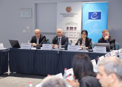 Заместитель Министра юстиции Левон Балян выступил со вступительным словом на публичном обсуждении Концепции относительно пересмотра системы условно-досрочного освобождения от отбывания наказания. Заместитель Министра отметил, что внедрение новой концепции относительно пересмотра системы условно-досрочного освобождения от отбывания наказания является важным шагом с точки зрения подготовленности осужденного вернуться в общество и обеспечения возможностей его реинтеграции. Концепция разработана созданной приказом министра юстиции рабочей группой — совместными усилиями вовлеченных экспертов, представителей гражданского общества. В ходе встречи была представлена концепция пересмотра системы условно-досрочного освобождения от отбывания наказания с акцентом на то, что в основу разработки последней заложена ресоциализация лица. В частности представлены реформы, предлагаемые относительно внедрения пошаговых механизмов применения института УДО, развития программ ресоциализации, пересмотра балловой системы докладов и формата составления докладов, которые дадут возможность подвергнуть дифференцированной оценке конкретные и реальные успехи осужденных и дифференцировать их от проявления нереального, определенного поведения для осуществления краткосрочных целей. За представлением новой концепции последовала дискуссия в формате вопрос-ответ, в течение которой участники договорились представить письменные предложения. Международные эксперты и партнеры СЕ подчеркнули важность реформ, осуществляемых Арменией в деле создания совершенной системы. Обобщая встречу заместитель Министра поблагодарил участников за эффективное обсуждение и содействие, оказанное партнерами СЕ. Встреча прошла в рамках программы СЕ "Укрепление защиты прав лишенных свободы лиц".
