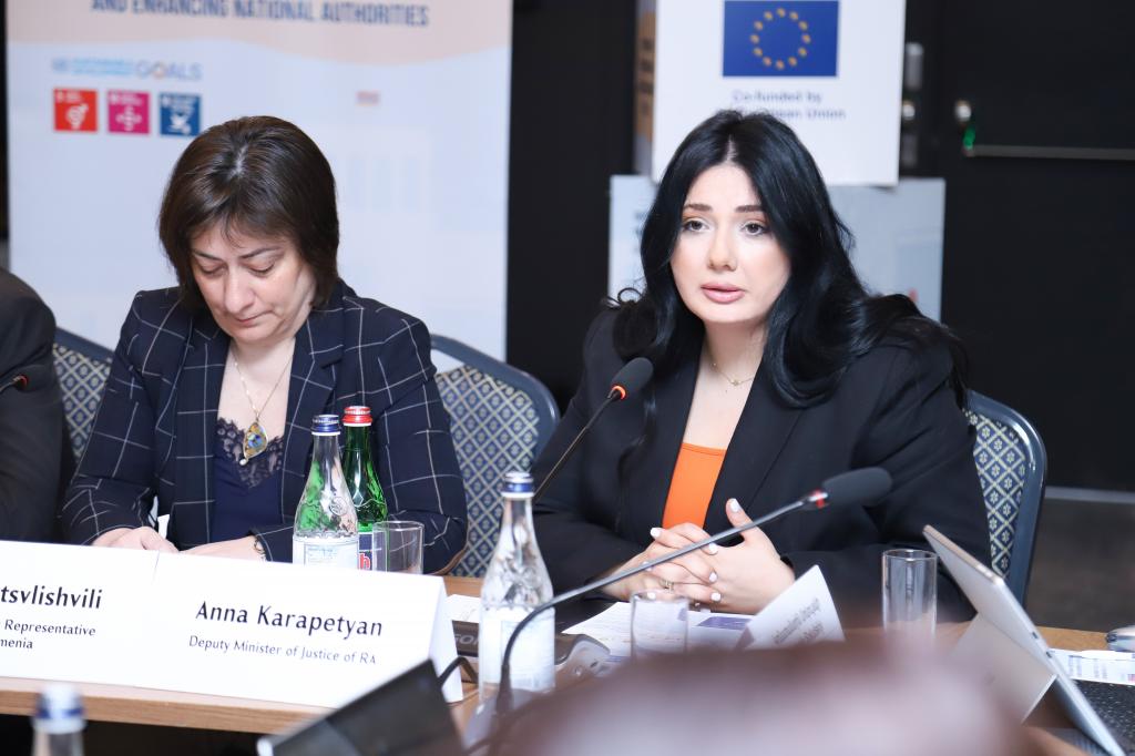 Заместитель Министра юстиции Анна Карапетян со вступительной речью выступила на заседании Совета программы "Стимулирование защиты прав человека и укрепление национальных институтов", финансируемой Европейским союзом и осуществляемой ПРООН, ЮНИСЕФ, Фондом народонаселения ООН.
